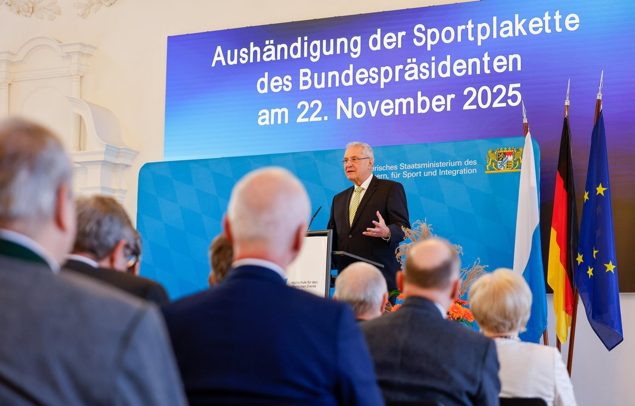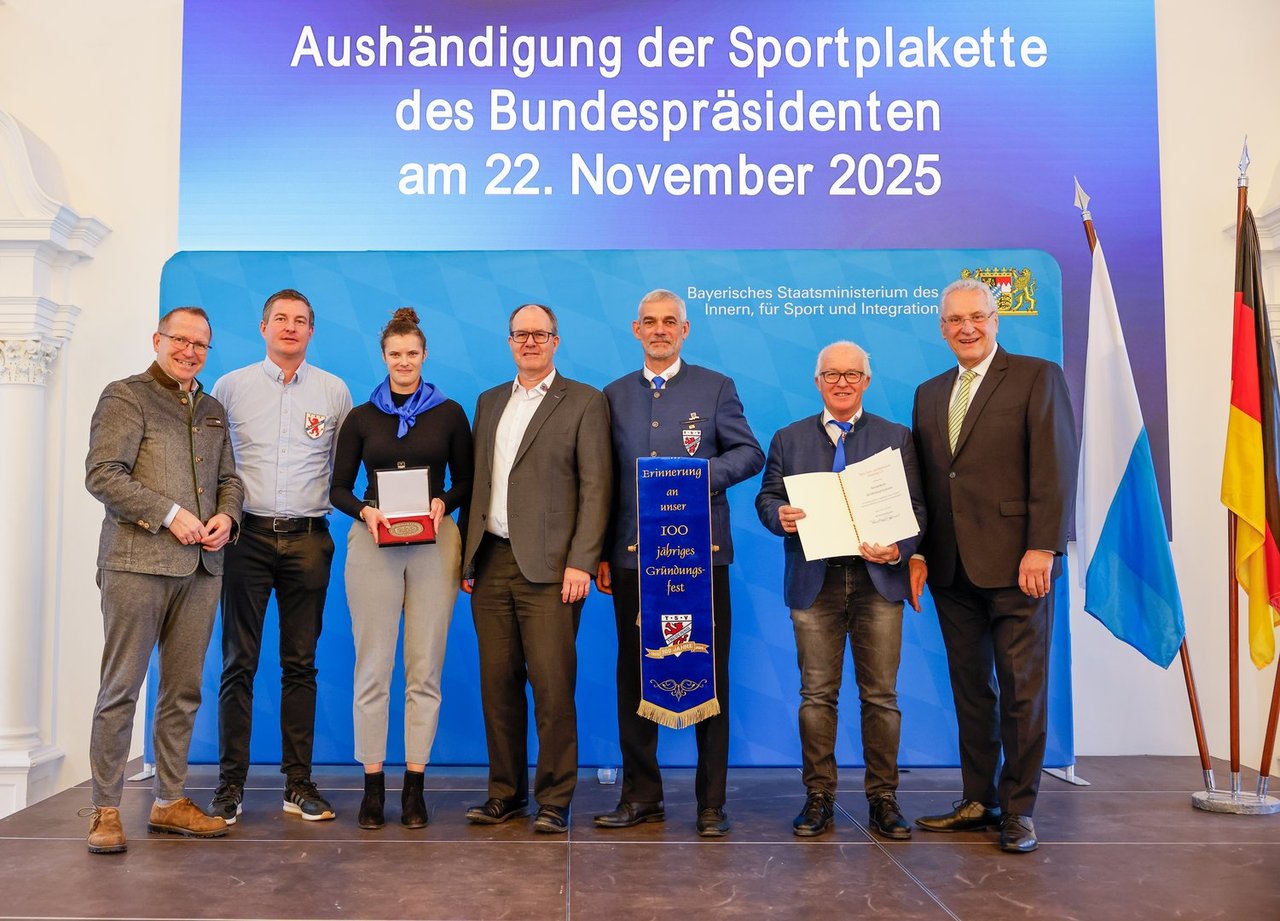 Die Sportplakette des Bundespräsidenten stellt die höchste staatliche Auszeichnung für Turn- und Sportvereine in der Bundesrepublik Deutschland dar. „Diese Ehrung ist ein sichtbares Zeichen für die ehrenamtlichen Helfer und Verantwortlichen, die sich unermüdlich für das Vereinsleben und damit auch für die Gesellschaft einsetzen“, betont Bayerns Innenminister. „Der organisierte Sport mit seiner integrativen Kraft für Jung und Alt schenkt unserer Gesellschaft starken Zusammenhalt, den wir brauchen, um gemeinsam auch die Aufgaben und Herausforderungen von morgen erfolgreich zu meistern.“