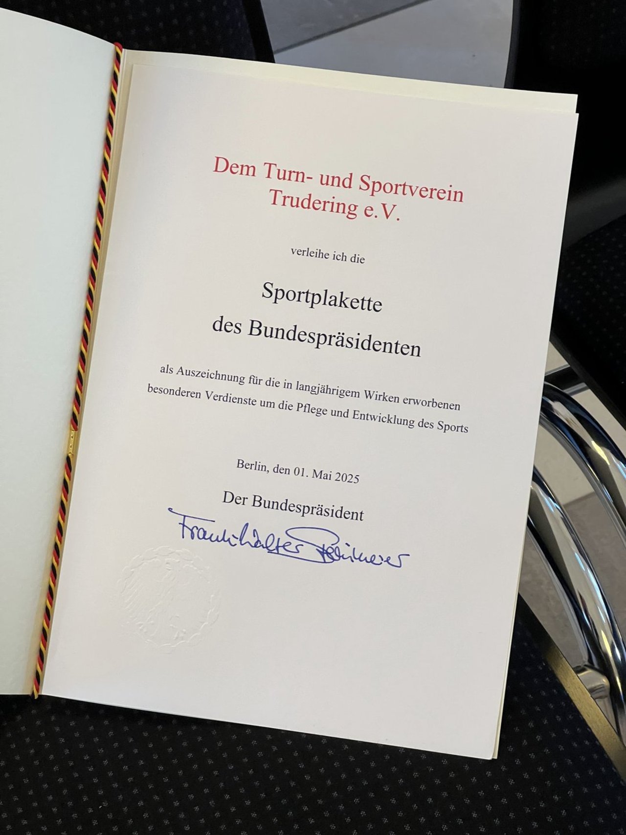 TSV Trudering mit der Sportplakette des Bundespräsidenten ausgezeichnet